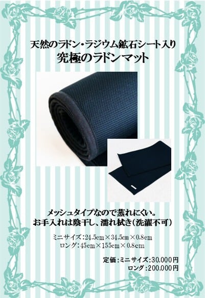 玉川温泉や三朝温泉よりも高い線量の高濃度 ホルミシス のマットシートです。