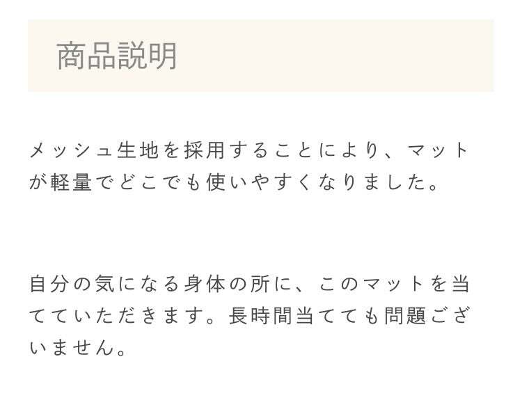 日常生活でご利用いただける、細胞活性化&ミトコンドリア活性化が体験できるマットです。